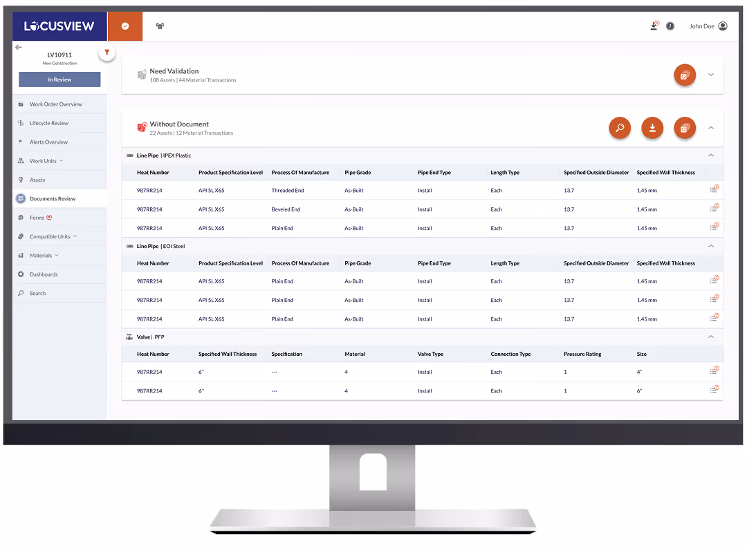 LocusviewTRACE features an integrated workflow that connects traceability documentation directly to the physical asset.
